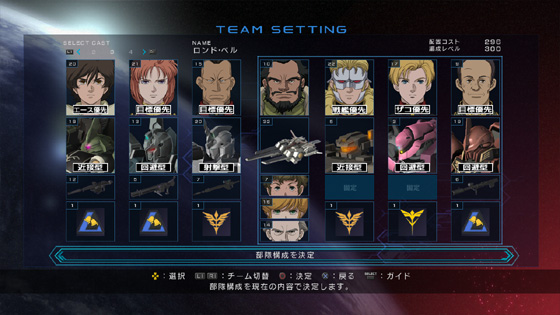 カスタムキャストモードでは、最大6機のモビルスーツと戦艦1隻を編成して、シナリオごとに用意された複数のミッションをクリアしていく。
