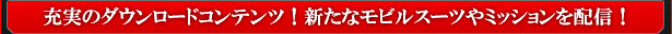 本作ではゲームをさらに楽しめる「追加コンテンツ」として、様々なモビルスーツやキャラクター、武器、ミッションなどが続々と配信される。