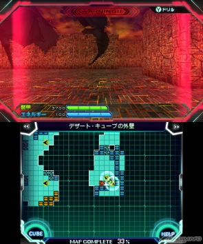 An automap appears on the lower screen (3DS) or inset in the upper right and available by pressing Start (PSP) during Ride Dungeons.