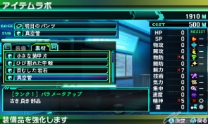 Items can be created and upgraded up to five times via synthesis, boosting character stats when equipped.