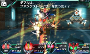 Masked Rider Double's Fang Strizer can be powered up too. Use your Hero Gauge points wisely!