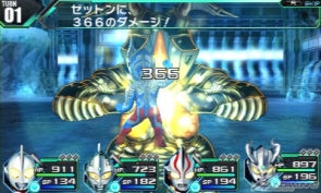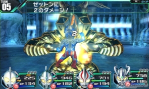 The Ultramen begin battle with a blue color timer. After three turns it turns red, reducing most stats but boosting their critical hit rates.