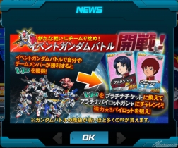 Namco Bandai Online's SD Gundam Operations, available on Yahoo Games, introduces the Event Gundam Battle today at noon. Players can earn VP, redeemable for Platinum Tickets.