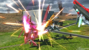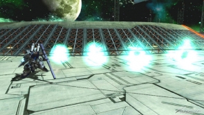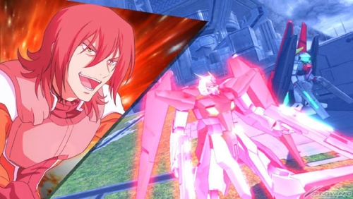 ▲ EX Burst pierces the enemy with the GN Archer and GN BEam Saber before detaching to rain death from above.