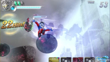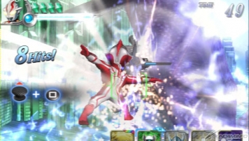 ▲ Ulraman Mebius can juggle foes against walls. Enemies can't get away.