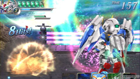 ▲ 00 Raiser hits a rising enemy with its long-range GN Sword III Rifle!