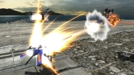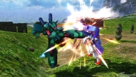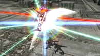 ▲特殊格闘武装「掴み」では、敵に掴みかかった後、「オーラを放出し自爆。高いダメージを与えられるが自機の耐久度が0になってしまう」、「蹴り飛ばす」、「上空に放り投げ、ビーム・ライフルで撃ち抜く」のいずれかの派生攻撃を選択する。自爆攻撃は、相手が油断したときやプレッシャー攻撃を当てたあとに、妨害を恐れず狙っていこう。