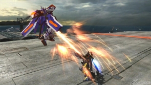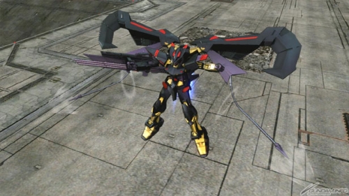 「機動戦士ガンダムSEED ASTRAY」より「ガンダムアストレイゴールドフレーム天」が参戦。オーブがヘリオポリスで開発していた3機のうちの1機で、ヘリオポリスからロンドによって運び出された後、オーブ内で改造を受け現在の姿となる。