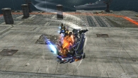 ▲特殊格闘武装では、マガノイクタチで敵を挟み、掴んだ後、「耐久値を回復する(ボタン連打により回復量は増加)」、「零距離でランサーダートを発射し、敵を打ち上げる」、「上空に飛びあがり、トリケロス改で斬り下ろす」のいずれかの派生攻撃を選択する。出撃時の耐久値はやや低めだが、うまく当てて耐久値を回復することで、コスト以上の粘りを見せることができる。