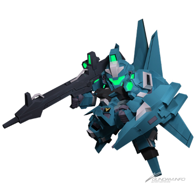 【武装(通常時)】 武器1:マシン・キャノン 武器2:メガ粒子砲(拡散ビーム) 武器3:ファンネル スペシャルアタック:全弾発射型 【スキル】 スキル1:鉄壁守備EX スキル2:強化人間の運命 |