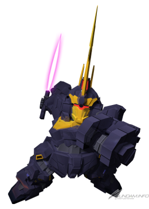 A mobile suit from Mobile Suit Gundam UC. Its melee attacks have wide reach, and its Armed Armor VN inflicts 0 Ammo. Fate of Cyber-Newtype (Banshee) boosts both ranged attack and defense. Its convenient 60mm vulcans also have a long range.