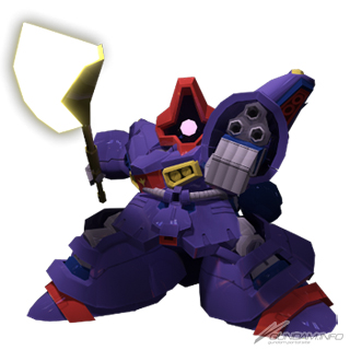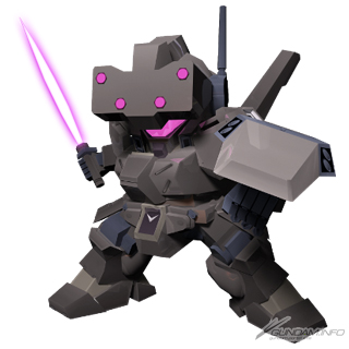 A mobile suit from Mobile Suit Gundam UC. Its Bazooka and Missile Launcher both inflict knockback, making it a great opener. Attack Up and Mobility Up boost its efficiency in melee further if you've got the right timing.