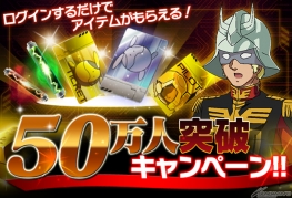 お得なアイテムが毎日もらえる!「50万DL突破記念キャンペーン」実施中!「ガンダムエリアウォーズ」