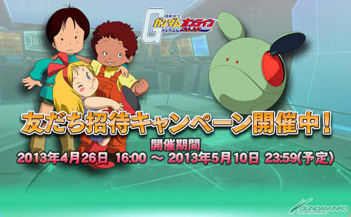 ゴールデンウィークの連続企画第5弾「友達招待キャンペーン」は、メール経由で友達を「機動戦士ガンダムオンライン」へ招待することができ、招待された友達が一定の条件を満たすと招待者へ特典アイテムが届くというもの。