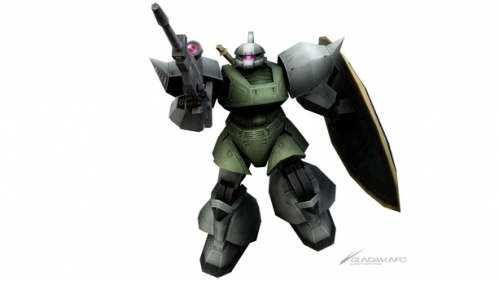 ジオン公国軍の次期主力モビルスーツとして開発された機体。U.C.0079 10月に先行して製造された25機が先行量産型ゲルググと呼ばれている。ビーム・ライフルの携行やガンダム並みのジェネレーターを搭載。大量生産を前にしてテスト的に生産された。シャア・アズナブルが搭乗した赤い機体が有名。本作でもビーム・ライフルと両刃が特徴的な近接兵器ビーム・ナギナタを装備し、大きな戦力となる。