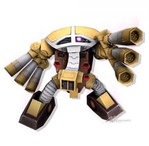 本作では、ゴールド設計図機体なら格闘攻撃も可能。アッガイをベースに後方支援として開発された機体で、高い火力の武装を揃えており、中距離以遠からの攻撃を得意とする。