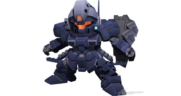 『機動戦士ガンダムUC』に登場するモビルスーツ。武器2「ハンド・グレネード」は中距離の射撃武器で、武装変更後の武器1は「バルカン・ポッド・システム」、武器2は「ビーム・ライフル」と、中距離武器をふんだんに備え、さらにスキル1「高性能OS」でリロード時間を短縮できる。スキル2「トライスター」には、味方全機の攻撃力とブースター使用時間を伸ばす効果がある。