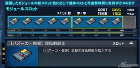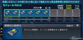 一度開発したモジュールは、他機体にも装備することができるので、一度の開発で末永く使用することが可能。ただし、装備すればするほどコストや再出撃時間も増加する。