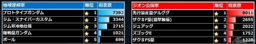 ▲アンケートにより再登場が決定した各軍TOP5の機体はこれだ!