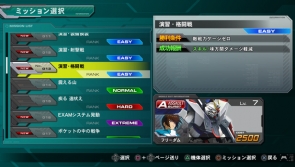 ▲ミッションには、選べる4段階の難易度が設定され、ミッションによって異なる勝利条件の達成を目指すこととなる。機体選択画面にて全プレイアブル機体の中からミッションに挑戦する1体を選択すると、選択した機体の現在のレベル、選択したバーストタイプが表示される。