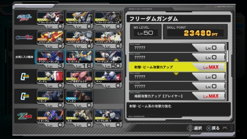 ▲ミッションで入手したスキルポイントは機体ごとに蓄積されるため、様々なミッションに挑んでスキルを獲得しながら、ポイントを使ってスキルのレベルを上げて強化しよう。