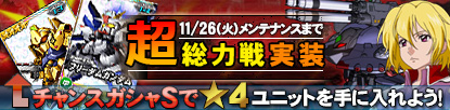 バンダイナムコオンラインよりiOS/Android向けに好評配信中のタブレット端末専用アプリケーション「SDガンダムオペレーションズ」では、本日11月19日(火)より待望の「超総力戦」がついにスタートした。