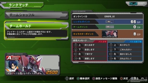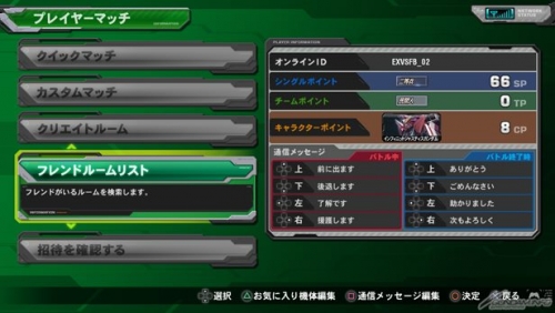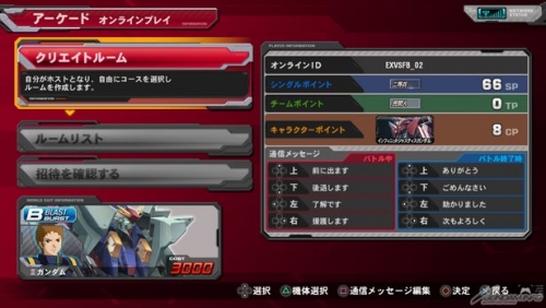 今作よりアーケード版「EXVS.FB」と同じく、バトル終了時にも通信メッセージが送れるようになった。