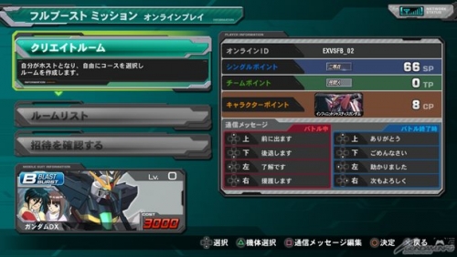 「フルブーストミッション(オンラインプレイ)」では、ルームを作成/検索し、PS3版オリジナルモード「フルブーストミッション」をオンラインでプレイすることができる。