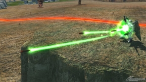 ▲「GNフルシールド」展開中の特殊射撃は「GNスナイパーライフル」を使った照射攻撃に変化する。発生、弾速ともに優秀なので積極的に狙っていこう。