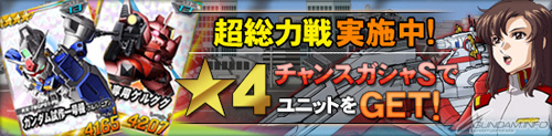 「マリュー搭乗アークエンジェル」を倒した際に引くことができるチャンスガシャSには、超強力なユニット「★4 フリーダムガンダム」、「★4 シャア専用ゲルググ」、「★4 ガンダム試作一号機フルバーニアン」、「★4 百式」を獲得できるチャンスがあるほか、エースユニットガシャには「マリュー搭乗アークエンジェル」に対し、3倍の攻撃力を発揮する「★2 デュエルガンダムアサルトシュラウド」が追加される。