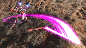 ▲特殊格闘の「特殊移動」は一定距離を移動。移動中に射撃や格闘もできる本機の目玉とも言える強力な技だ!