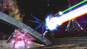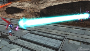 ▲特殊格闘では「ストライクフリーダム」が出現後、ビームライフルを3連射する。中距離戦で頼りになるぞ!