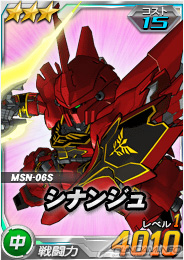 同じく本日よりエースユニットガシャに、超強力なユニット「★3 シナンジュ」、「★3 グフイグナイテッド」が追加された。「★3 シナンジュ」は、「近距離/単体」のスペシャルウェポンを搭載した超強力な機体となっているので、ぜひとも手に入れよう。