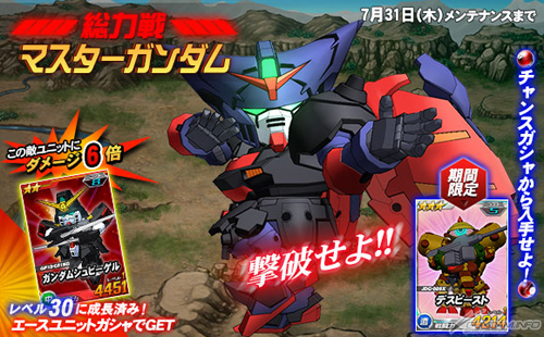 総力戦には7月31日(木)までの期間限定で「マスターガンダム」が登場し、期間中に任務を実行すると、まれに遭遇することがある。