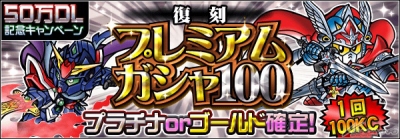 バンダイナムコゲームスより好評配信中のiOS/Android向けゲームアプリケーション「ナイトガンダム パズルヒーローズ」では、ダウンロード数が50万を突破をしたことを記念して、「50万ダウンロード突破記念キャンペーン」が開催中だ。