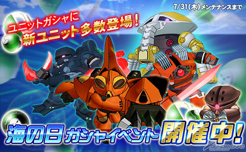 さらに、エースユニットガシャに「★3 マスターガンダム」、プラチナパイロットガシャに「★3 東方不敗マスター・アジア」が追加されたほか、「11連ガシャ★3以上or得意ユニット1枚保証キャンペーン」と「海の日ガチャイベント」も本日よりスタートした。
