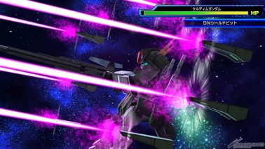 全身にマウントされた「GNシールドビット」は遠隔操作による防御だけでなく、内蔵されたビームガンによる攻撃でその真価を発揮する!