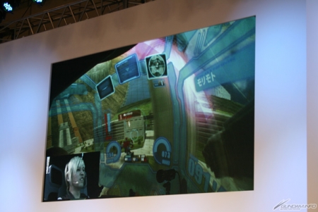 ▲対戦中の模様は、ステージのスクリーンで実況を交えながら鑑賞。写真は森本氏のコックピット側の映像で、左下にプレイ中の森本氏が。