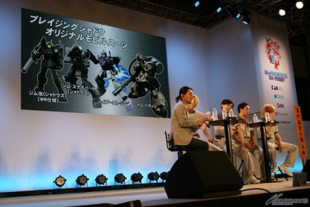 「ブレイジングシャドウ」のMSは「戦場の絆」でも人気で、性能も高い機体と熱く語る板倉氏と小隊の面々。ステージでは筐体が2台持ち込まれていて、後半では実際に板倉小隊のメンバーが対戦をすることに。