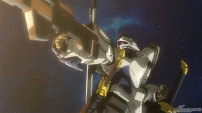 ▲前作での優秀作品(左)と、同機体が『ガンダムビルドファイターズ』第23話「ガンプラ・イブ」に登場したシーン(右)。