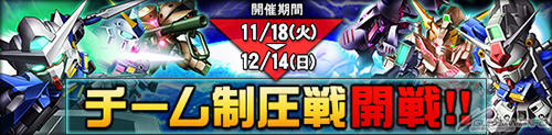 本日より、「11連ガシャ★3ユニット1枚保証キャンペーン」、「チーム制圧戦-宇宙戦」、「敵撃破時獲得GPアップイベント」がスタート。いずれも期間限定のお得なイベントとなっているので、ぜひともチェックしてみよう。