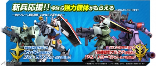 本日よりスタートした「新兵募集キャンペーン」は、期間内に「准尉」への昇格を達成すると強力な機体を開発できる「ゴールド設計図」と、レンタル機体を使用できる「要請書」がプレゼントされる。