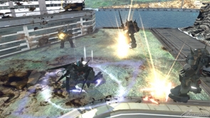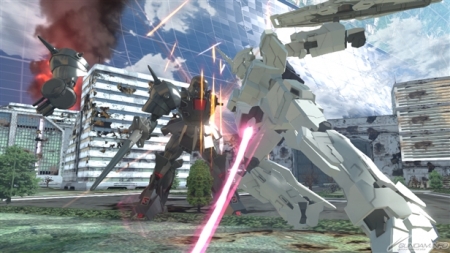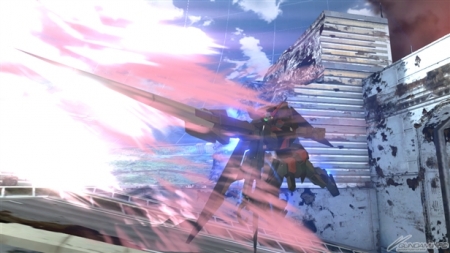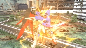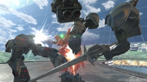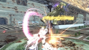 ▲素早い連撃で敵に反撃の隙を与えずに攻撃可能!超接近用武器のためシールドガードをされると苦戦することも!?「△」ボタンで敵機と一緒に空中へ!空中で連続攻撃を一気に叩き込め!