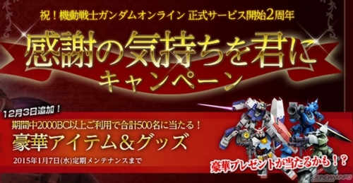 詳しくは 「機動戦士ガンダムオンライン 2周年記念キャンペーンサイト」をご覧ください。