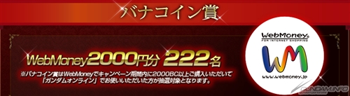 期間中に「WebMoney」を利用してバナコインを2,000BC以上購入し、2,000BC以上利用したプレイヤーを対象に、合計222名に2,000円分の「WebMoney」がプレゼントされる。
