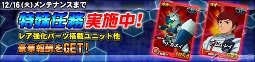 今回の総力戦では「ユニコーンガンダム」が登場し、12月24日(水)までの期間中に任務を実行すると、まれに遭遇することがある。
