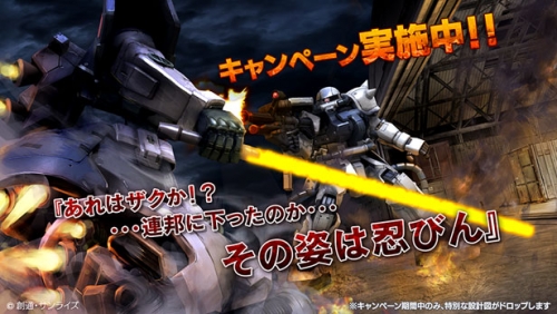 キャンペーン期間中は設計図報酬として、特別な汎用タイプMS「ザクIIF2型」の設計図がドロップするようになる。