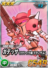 【左】チャンスガシャS限定「★3 ガデッサ(リヴァイブ機 / トランザム)」