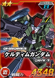 【右】「サーシェス搭乗アルケーガンダム」に対し6倍の攻撃力を発揮する「★2 ケルディムガンダムGNHW/R」