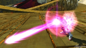 ▲弾頭が太くて当てやすいブラストインパルス形態のチャージ射撃。手動で方向を曲げることが可能なので、遠距離で狙ってみよう。